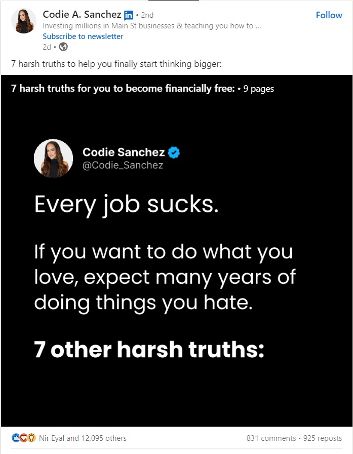 This post above received more than 12 thousand likes on LinkedIn. Now I ask: Would you, as a entrepreneur, want to have employees on your team with this kind of attitude?