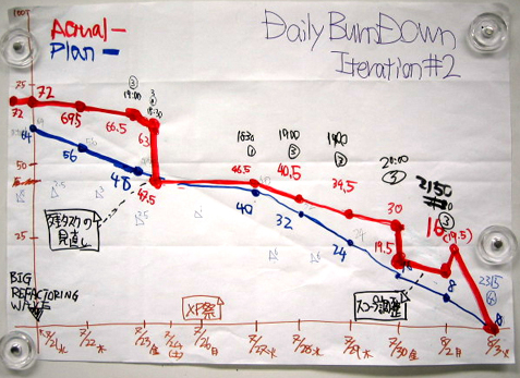 DailyBurndownBurn-down charts help us track the progress being done. They present clearly how much work has been completed, and how much work is left until the end of an iteration. By taking a look at the chart, it’s easy to know if the project is behind or ahead of schedule. But the burn-down chart tells us nothing about the quality of the software being produced, and neither has it any value after the iteration has been completed. Burn-down charts are a project management artifact, they are not a deliverable of the software development process.